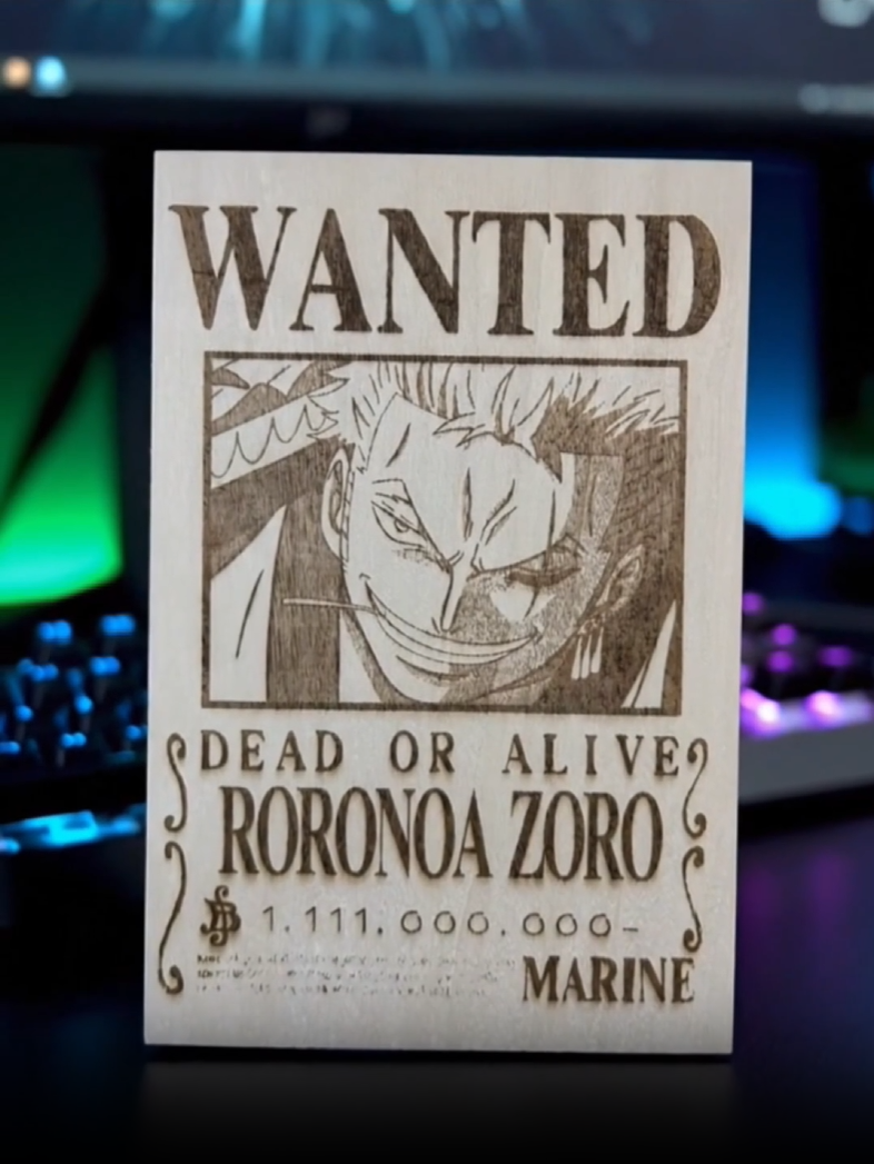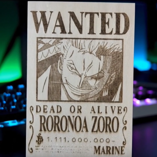 Panel decorativo de madera grabado a láser, inspirado en la estética de los guerreros espadachines del anime japonés.